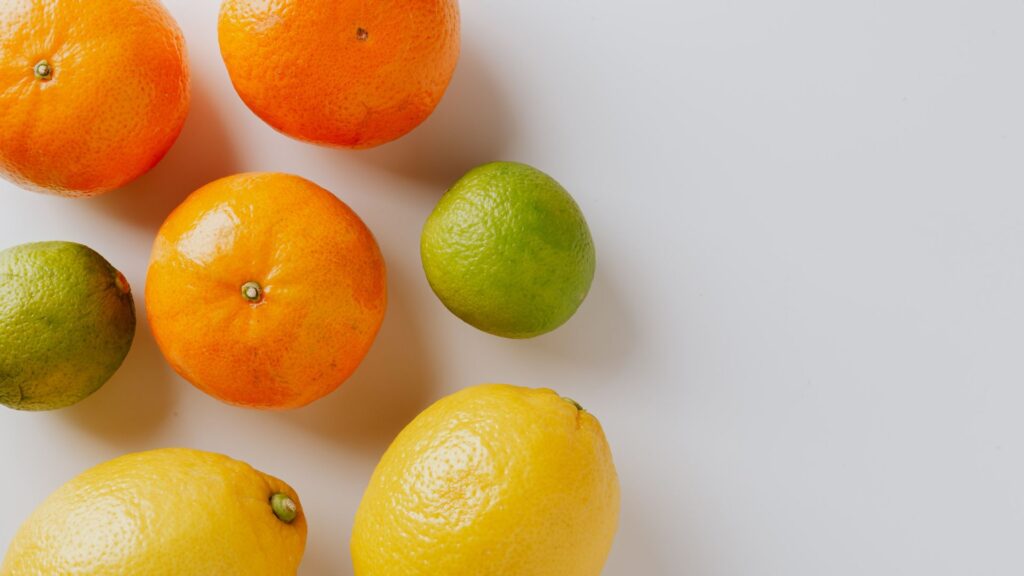 - Frutas cítricas: laranja, limão, acerola, kiwi.
